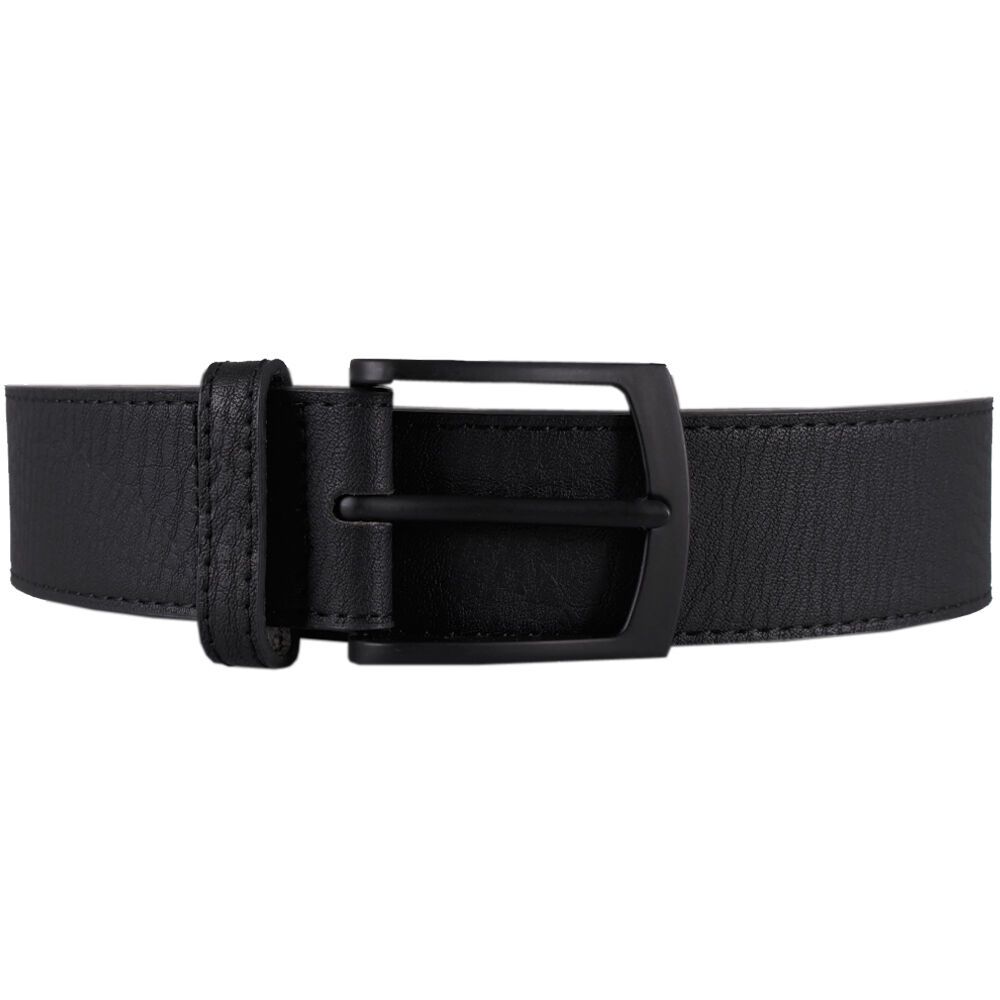 • Leather belt with matte black pin buckle